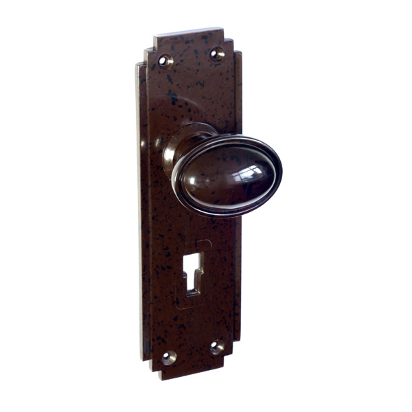 Vintage-style real Bakelite unsprung door knobs sets in Walnut Brown. Sets are pairs and include the spindle with grub screws & spacer washers. They should suit Rim Locks as well as Mortice Locks & Latches. Designs are expertly modeled on the early 20th century originals with the aid of 21st century computers. All items include fixing screws. Differences in colour detail and background colour in the Walnut Brown can be expected.